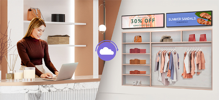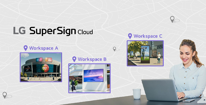 LG SuperSign Cloud is a cloud-based CMS (Content Management Solution) for integrated digital signage management. Through LG SuperSign Cloud, users can remotely control multiple displays*, create and distribute content tailored to each space anytime anywhere without being restricted by time and location**.